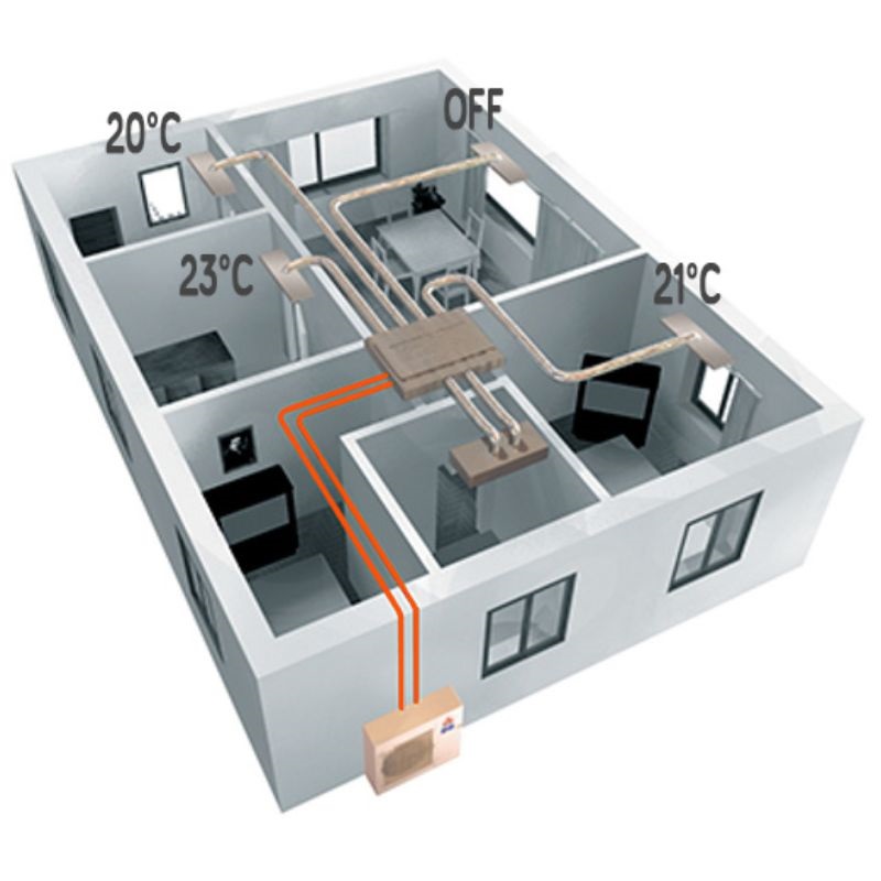 Airzone Easyzone Plenum QAI Slim + Mitsubishi SFZ-M35-50 4-Auslass IB8 MVHR