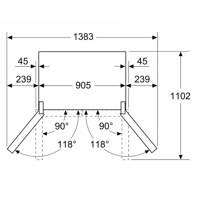 Erforderliche Aufstellmaße (H x B x T): 1830 x 905 x 731 mm