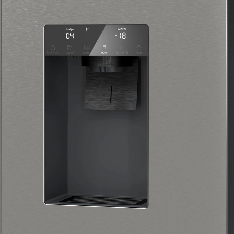 Vollintegrierter Wasser-, Eiswürfel- oder Crushed-Ice-Spender.