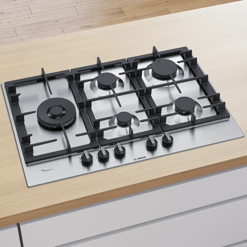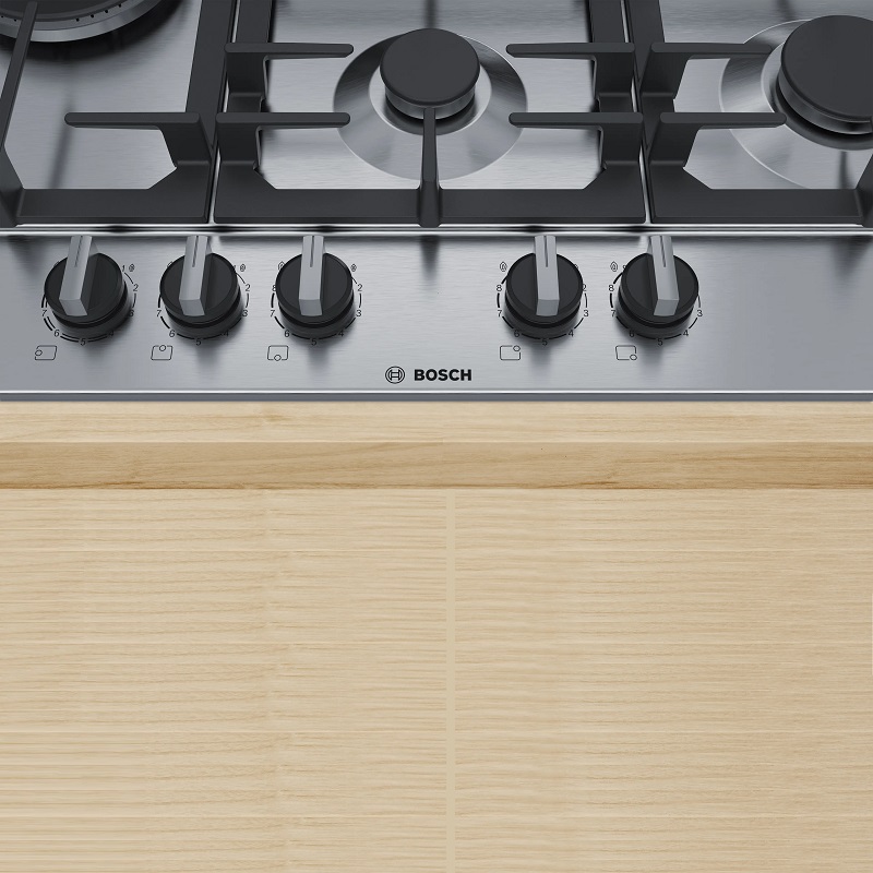 Bosch PCS7A5I90 Gaskochfeld (Butan/Erdgas), 75 cm, 5 Brenner, Edelstahl