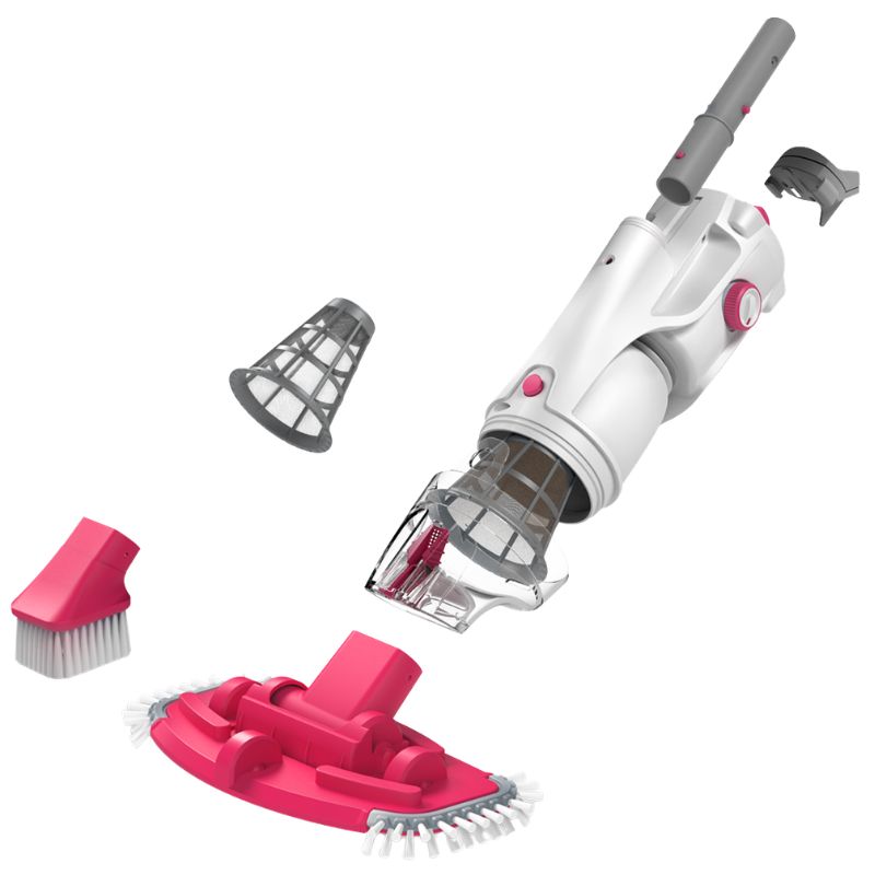 Dieser Akku-Poolreiniger ist leicht zu transportieren. Er verfügt über einen wiederaufladbaren Lithium-Ionen-Akku und eine starke Saugkraft.
