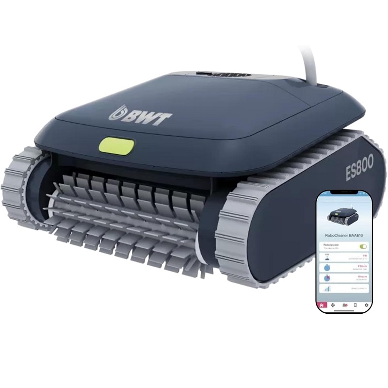 Leistungsstark, leicht und innovativ. Mit nur 5,75 kg ist der BWT ES 800 Poolroboter besonders handlich. Seine intelligente gyroskopische Navigation reinigt effizient jeden Winkel Ihres Pools. Boden, Wände und Wasserlinie werden dank der hochwertigen PVC-Bürsten perfekt gereinigt – für kristallklares Wasser.