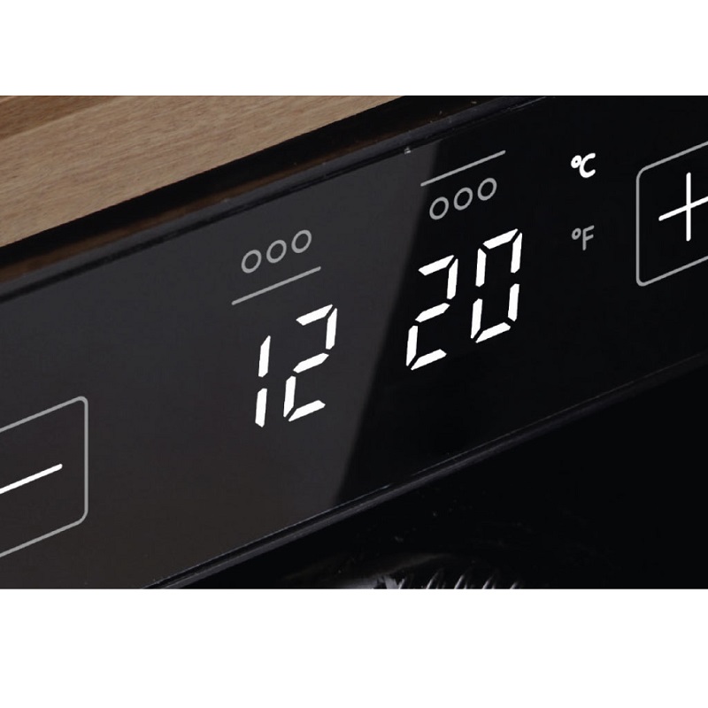 Der 45 cm hohe Einbau-Weinkeller Frecan Pomerol fügt sich perfekt in einen 60 cm breiten Schrank ein. Mit einem Fassungsvermögen von 23 Flaschen ist er ideal für mittelgroße Küchen. Er eignet sich perfekt zur Lagerung von Weiß- und Rotweinen und lässt sich dank des Touchpanels einfach bedienen. Die einstellbare 3000K-LED-Beleuchtung sorgt für eine elegante Atmosphäre und schützt gleichzeitig die Flaschen. Ein kompaktes und modernes Design, das in jede Küche passt.
