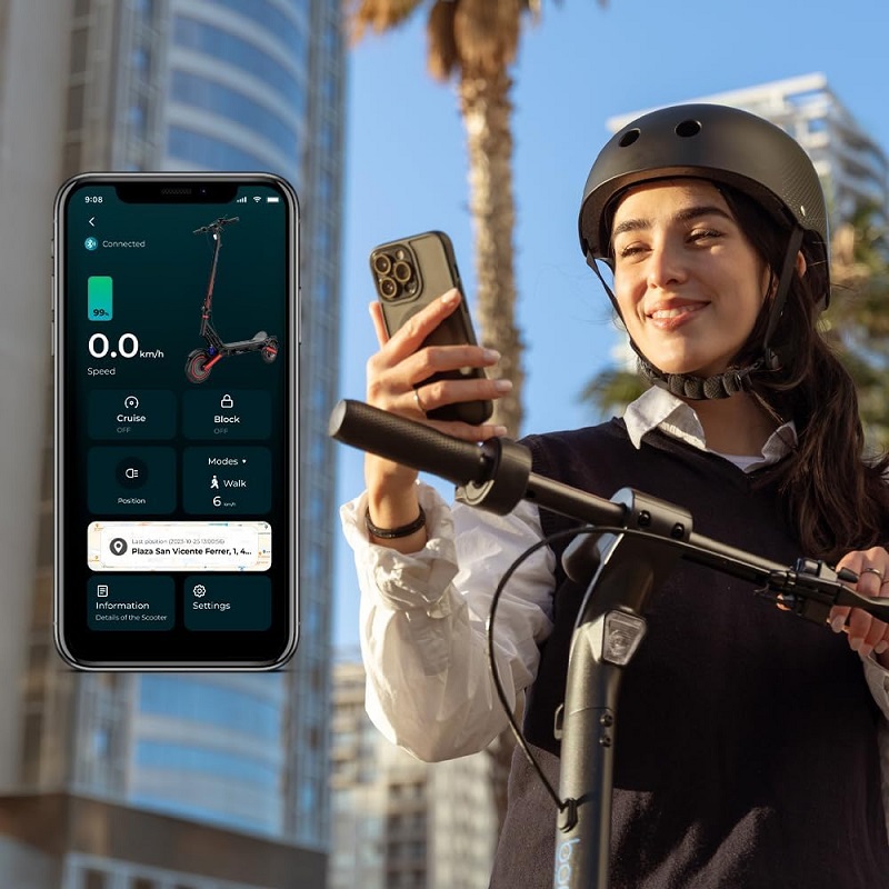 Vorschriftenkonform: Erfüllt alle Anforderungen der neuen spanischen Straßenverkehrsordnung. App-Steuerung: Steuern Sie die Funktionen Ihres Scooters bequem per Smartphone – mit 2 Jahren kostenlosem App-Zugang.
