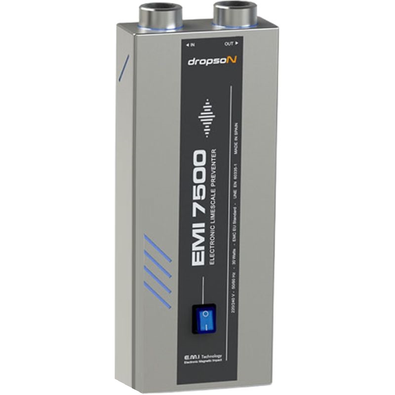 Der Dropson EMI 7500 Magnet-Wasserenthärter mit einer Kapazität von 9 m³/h verfügt über ein Gehäuse und Chassis aus satiniertem Edelstahl. Dieser Wasserenthärter der nächsten Generation arbeitet salzfrei, ist wartungsfrei und vermeidet Wasserverschwendung. Er ist für den Einsatz in Fabriken, Unternehmen und Privathaushalten geeignet.
