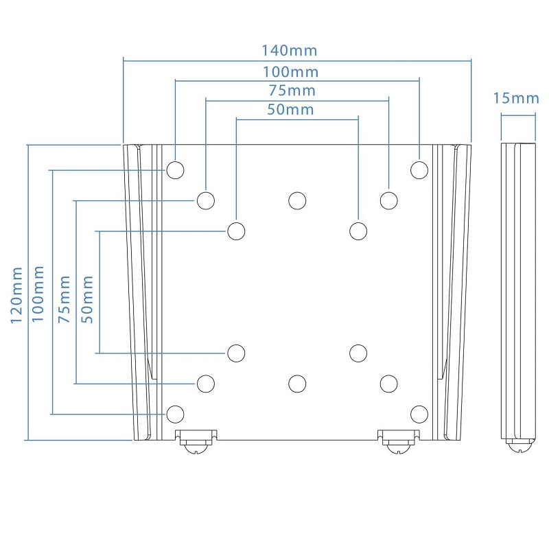 Maximale VESA: 100 x 100 mm kompatibel mit VESA-Montagestandards 50 x 50, 75 x 75 und 100 x 100 mm