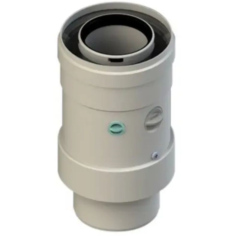 Intergas-kompatibler vertikaler 60/100-mm-Anschluss für Heizkessel, gefertigt aus PP und lackiertem Stahl, koaxial (Ø 60/Ø 100 mm). Kompatibel mit ACV- und Intergas-Heizkesseln.