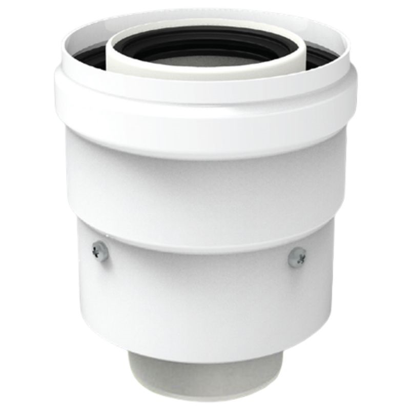 Vertikales Formstück für Heizkessel, aus PP und lackiertem Stahl, koaxial (Ø 60/Ø 100 mm).
