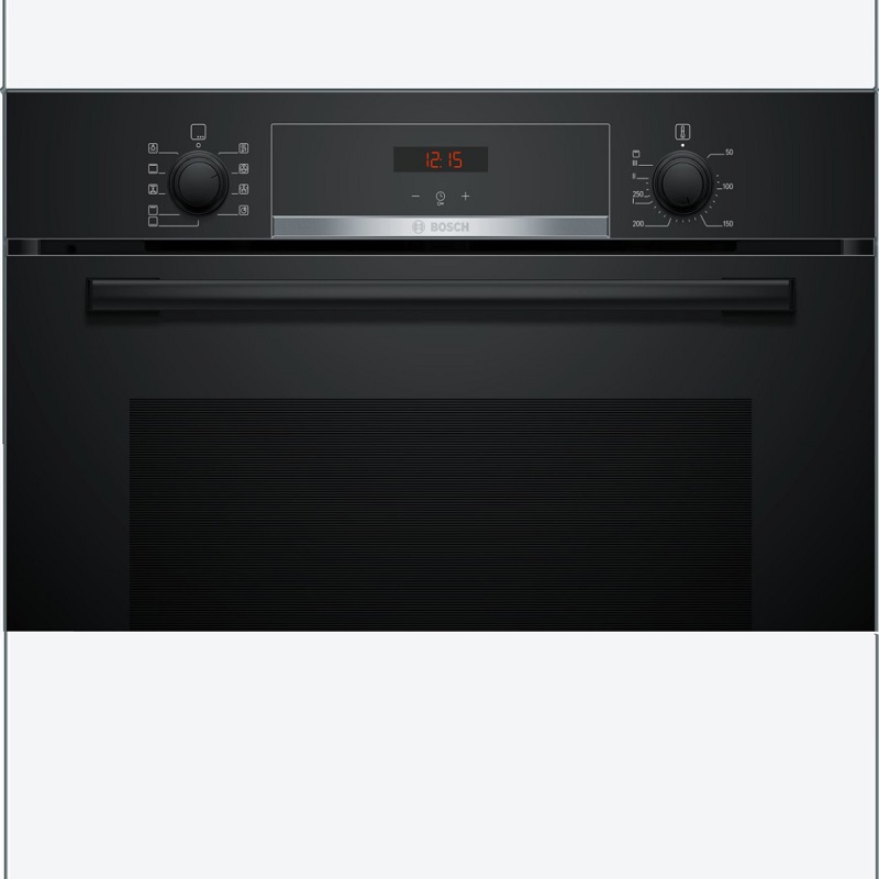 Bosch Serie 4 Backofen HBA534BB0. Backofengröße: Mittel, Backofentyp: Elektrobackofen, Gesamtinnenraumvolumen: 71 l. Einbauart: Einbau, Farbe: Schwarz, Bedienung: Dreh- und Touch-Bedienung. Uhrtyp: Elektronisch, Timer-Typ: Digital. Energieeffizienzklasse: A, Energieverbrauch (Heizung): 0,97 kWh, Energieverbrauch (Umluft): 0,81 kWh