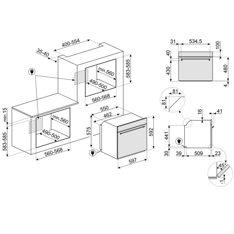 Einbaumaße: 56 x 58 cm, 57 x 59 cm