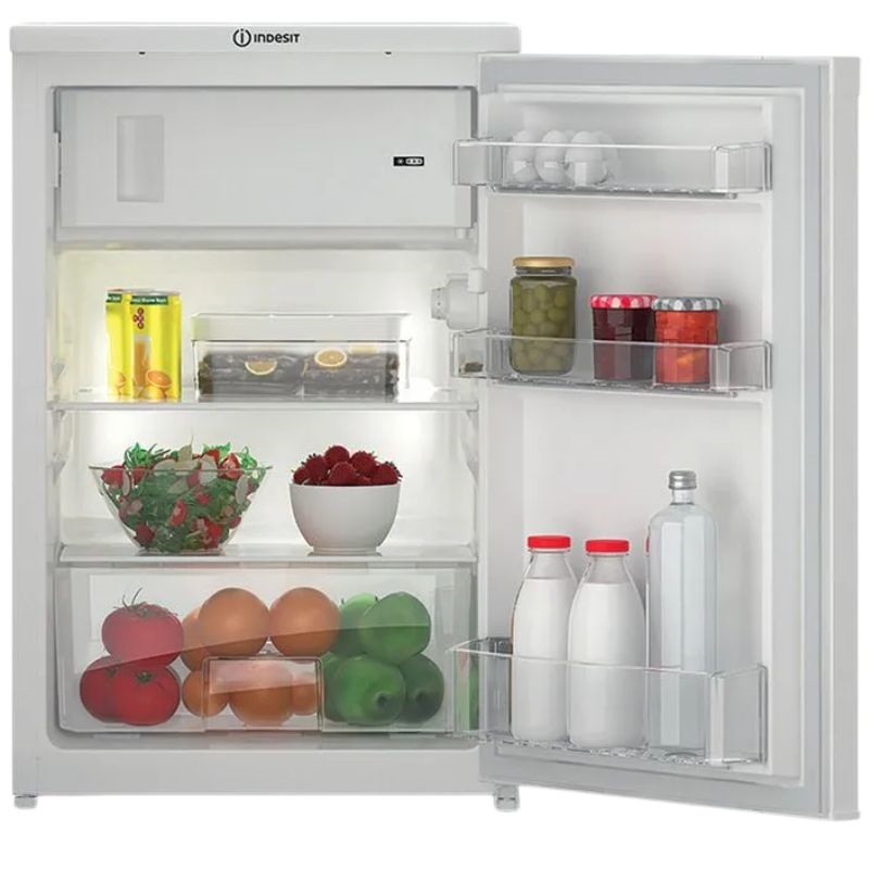 Erleichtern Sie sich Ihren Einkauf mit diesem freistehenden, weißen Indesit Unterbaukühlschrank. Mit einem Nutzinhalt von 114 Litern bietet er Platz für bis zu 6 Einkaufstüten. Die Low-Frost-Technologie reduziert Eisbildung und optimiert den Innenraum. Dank der leicht zu reinigenden Glasablagen ist die Frostfreiheit Ihres Kühlschranks ein Kinderspiel.