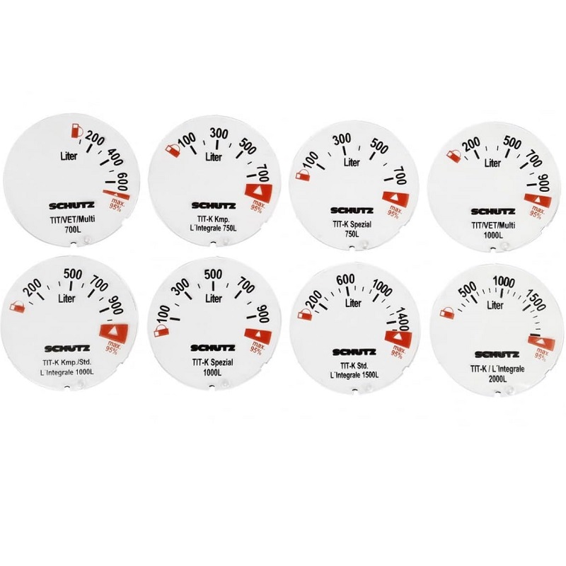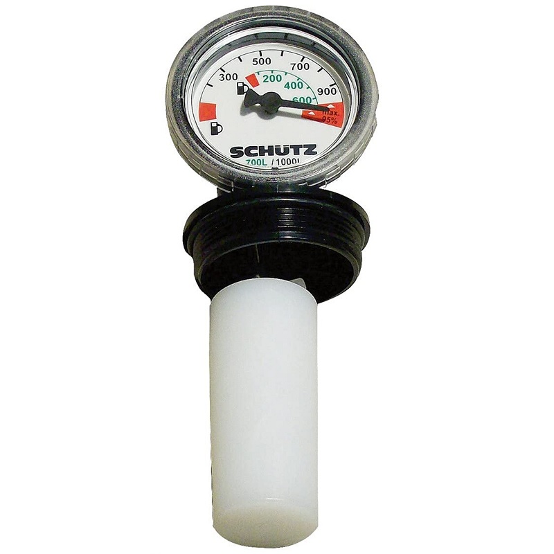 Der mechanische Füllstandsanzeiger, auch bekannt als Inhaltsanzeiger, verfügt über ein G2-Außengewinde und wird daher an den Schraubverschlüssen von IBCs (Intermediate Bulk Containern) mit G2-Innengewinde befestigt. Der Schwimmer eignet sich für HDPE-Lagerbehälter wie die Modelle Schütz VET 1000 und VET 700 sowie für Schütz-Heizöltanks. Die Skala ist in Litern angegeben. Dieser Füllstandsanzeiger kann auch für 600-Liter- und 2000-Liter-IBCs verwendet werden. In diesem Fall muss die Skala angepasst und der Schaft, auf dem der Schwimmer sitzt, gekürzt werden. Er ist kompatibel mit IBC-Deckeln mit abnehmbaren G2-Verschlüssen.