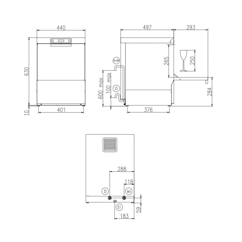 Kastel KSF35ESIPA Industriegeschirrspüler, 35x35-Korb, max. Höhe 250 mm