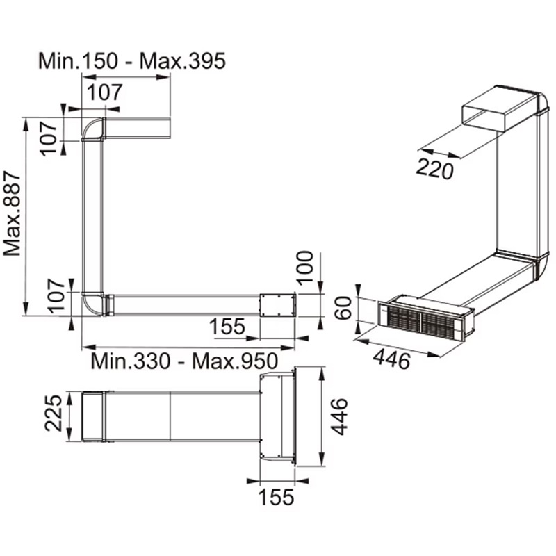 1 Vertikalwinkelstück: 220 x 90 mm