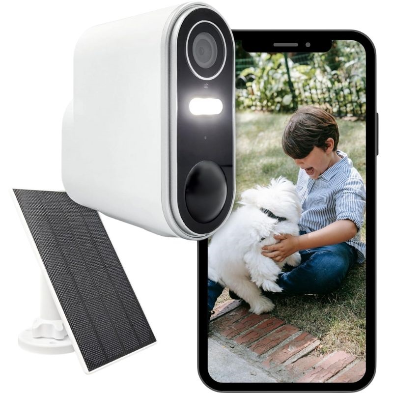Die kabellose Outdoor-IP-Kamera Konyks Camini Air 2 Solar AAACF47440 ist eine fortschrittliche Lösung für die kontinuierliche Außenüberwachung. Dank des integrierten Solarpanels, das eine unabhängige Stromversorgung über 240 V ermöglicht, zeichnet sie sich durch ihre lange Betriebsdauer aus. Ihr weißes Design und die kompakten Abmessungen von nur 1,8 cm Dicke sorgen für eine diskrete und elegante Installation und fügen sich nahtlos in verschiedene Umgebungen ein.