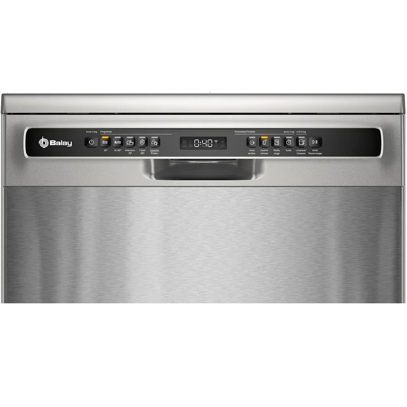 Der freistehende Geschirrspüler Balay 3VS5011IA ist ein Standardmodell (60 cm) mit Edelstahltür und schwarzem Bedienfeld. Die Bedienung erfolgt über Drucktasten, und ein integriertes Display ermöglicht die einfache Überwachung der Spülprogramme. Das Netzkabel ist 1,75 m lang, sodass ein 1,65 m und ein 1,9 m langes Verlängerungskabel verwendet werden können. Der Oberkorb ist höhenverstellbar und bietet somit maximale Flexibilität bei der Geschirrplatzierung. Der Innenraum aus Edelstahl garantiert Langlebigkeit.