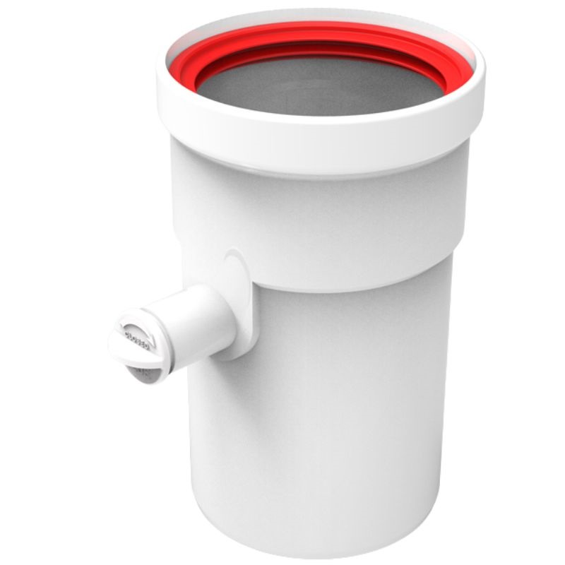 Kondensatrückführungsschlauch aus extrudiertem Polypropylen, Ø 80 mm, weiß, Außengewinde/Innengewinde.
