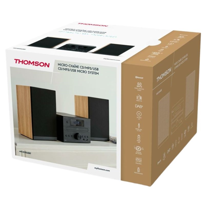 Dieses Thomson Mikro-HiFi-System bietet ein umfassendes Klangerlebnis und vereint Schlüsseltechnologien, die Kompatibilität mit verschiedenen Formaten und Geräten gewährleisten – alles in einem schlichten und eleganten Design.