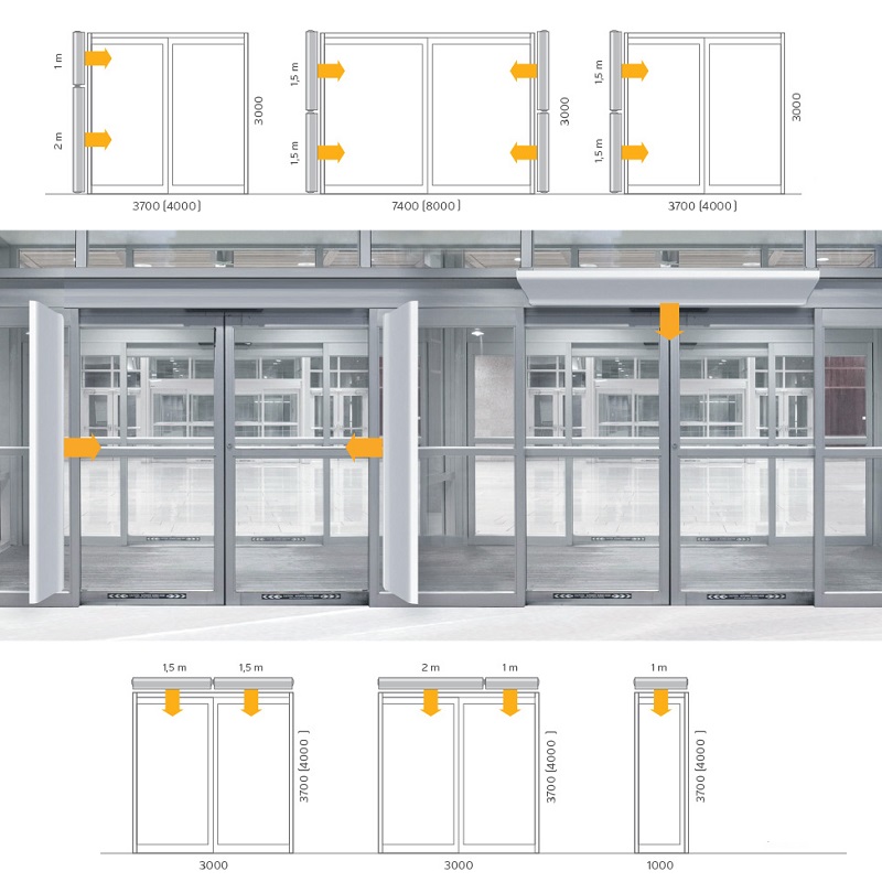 Der WING Luftschleier ist in drei Größen erhältlich: 1 Meter, 1,5 Meter und 2 Meter. Diese können beliebig kombiniert werden, sodass Sie jeden Eingang Ihres Gebäudes schützen können. Sein einzigartiges Design ermöglicht die Installation an repräsentativen Orten und erfüllt höchste ästhetische Ansprüche von Designern.