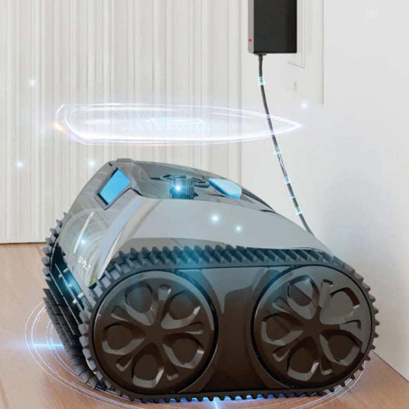 Der ausdauernde Akku und die Schnellladefunktion (8800 mAh in 3,5 Stunden) ermöglichen bis zu 110 Minuten Betriebszeit mit einer einzigen Ladung. Ausgestattet mit fortschrittlichen Sensoren und Gyroskopen navigiert er mit höchster Präzision durch den Pool und gewährleistet so eine gründliche Reinigung mit minimalen ausgelassenen Stellen.