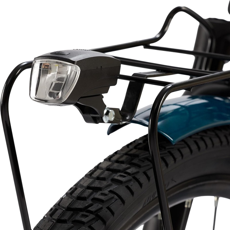 Das Pedelec-E-Bike ist dank seiner 28" x 1,75" Reifen, LED-Beleuchtung und mechanischen Scheibenbremsen vorne und hinten perfekt für die Stadt geeignet. Mit einer Reichweite von bis zu 80 km verfügt das J7 über einen herausnehmbaren 36V - 13Ah (468Wh) Akku, der Fahrten bis zu 80 km im Pedelec-Modus ermöglicht.