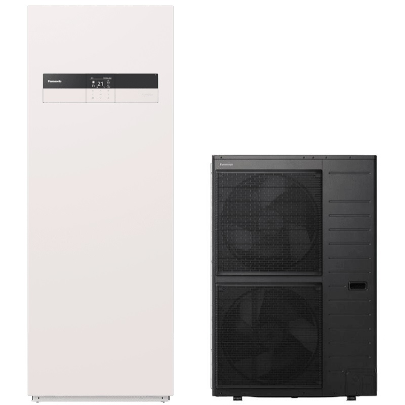 Hochleistungs-Split-System-Wärmepumpe Panasonic Aquarea, betrieben mit dem Kältemittel R32 (K-Serie). 12 kW Leistung. Inklusive Außengerät und Warmwasserbereitung. Integriertes Bedienfeld (abnehmbar und fest verkabelt). Hohe Effizienz und Leistung. Heizen, Kühlen und Warmwasserbereitung.