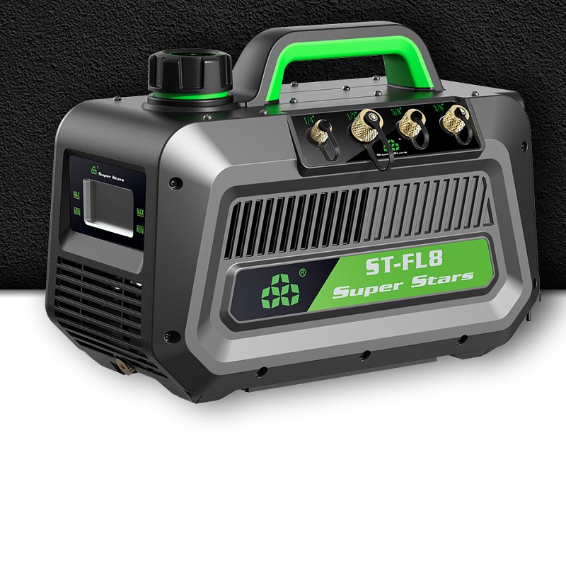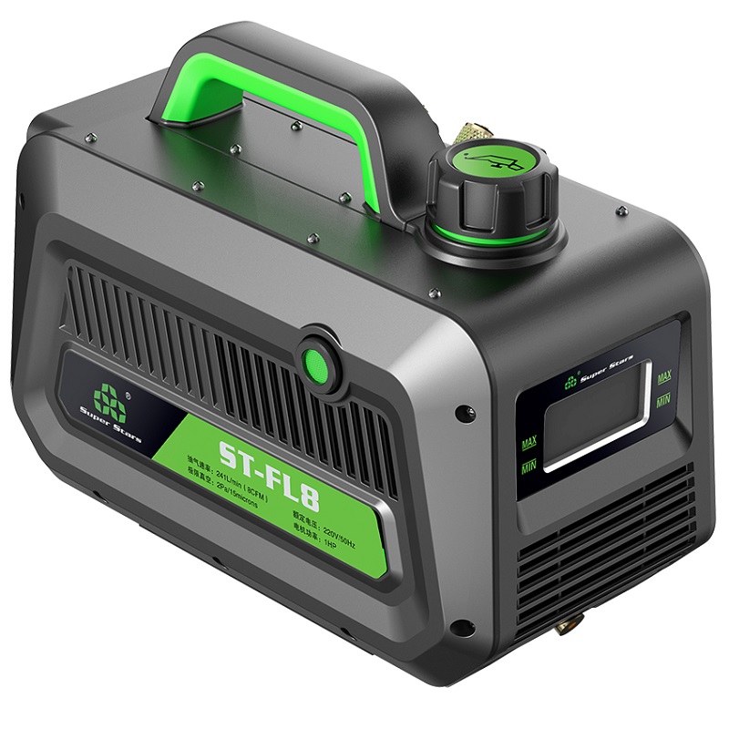 Die luftgekühlte ST-FL Vakuumpumpe nutzt modernste Technologie für überragende Leistung. Das für Kälte- und Klimaanlagen entwickelte Gerät ist mit Kältemitteln wie R32, R410A, R134A, R454C, R455A usw. kompatibel. Es verfügt über vier 1/4", 1/2" und zwei 3/8" Einlassöffnungen sowie ein großes Schauglas, um Ölmangel vorzubeugen und schnelles Nachfüllen zu gewährleisten. Der omnidirektionale Lüfter sorgt für eine hohe Pumpeneffizienz und schützt so effektiv die Maschinenleistung.