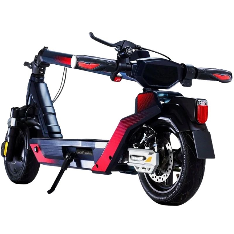 Das markante schwarz-rote Design, das die Markenidentität widerspiegelt, und das faltbare Design erleichtern die Aufbewahrung und den Transport auf kleinem Raum oder in öffentlichen Verkehrsmitteln und erhöhen so den Komfort und die Alltagstauglichkeit. Der Scooter verfügt über 10-Zoll-Räder vorne und hinten, die für gute Stabilität und ein angenehmes Fahrgefühl im Stadtverkehr sorgen. Ein integriertes Display ermöglicht es dem Nutzer, wichtige Informationen wie Geschwindigkeit und Akkustand während der Fahrt übersichtlich im Blick zu behalten.