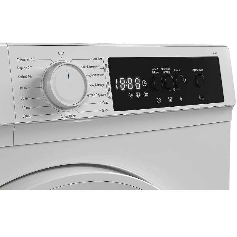 Kondensationstrockner, 8 kg, Energieeffizienzklasse G, 15 Programme, 8 Trocknungssensoren, 100-l-Edelstahltrommel, LED-Anzeige, Startzeitvorwahl, Innenbeleuchtung, weiß