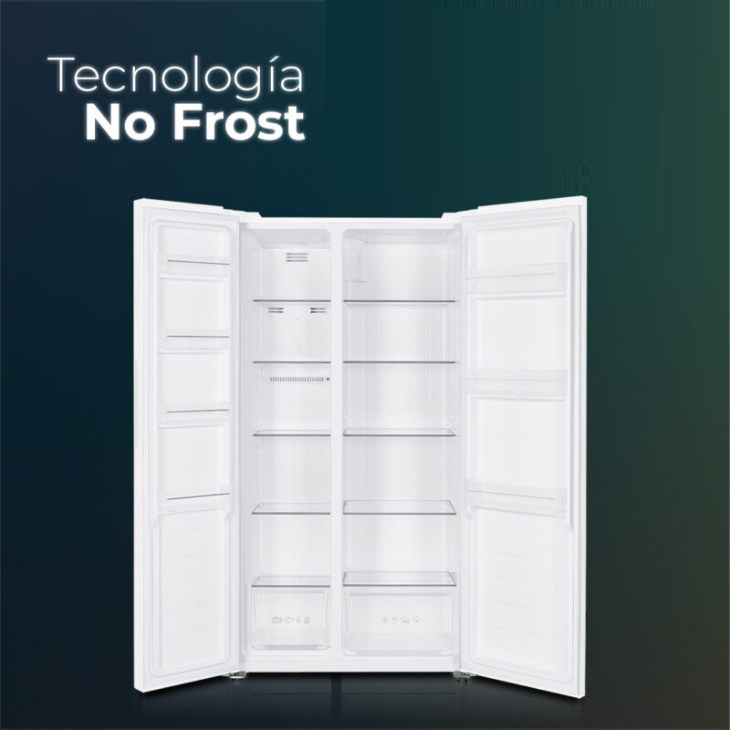 Dieser No-Frost-Kühlschrank ist mit einem Inverter-Kompressor ausgestattet und verwendet das Kältemittel R600a. Er ist in der Energieeffizienzklasse E eingestuft und hat einen maximalen Geräuschpegel von 39 dB. Sein weißes Design zeichnet sich durch zwei eingelassene Türen mit integrierten Griffen aus. Die Innenbeleuchtung erfolgt über LEDs. Das Touch-Bedienfeld umfasst ein LED-Display, eine automatische Abtaufunktion und weitere Funktionen zur Optimierung der Kühlschrankleistung. Mit einem Gesamtvolumen von 442 Litern verfügt er über ein 4-Sterne-Gefrierfach und mehrere Fächer für optimale Aufbewahrung.
