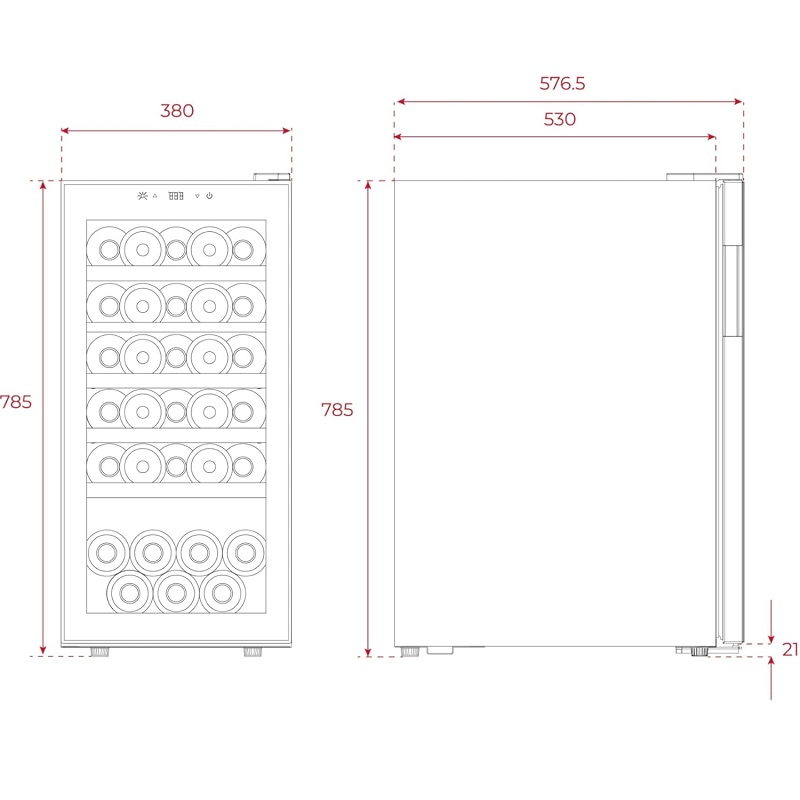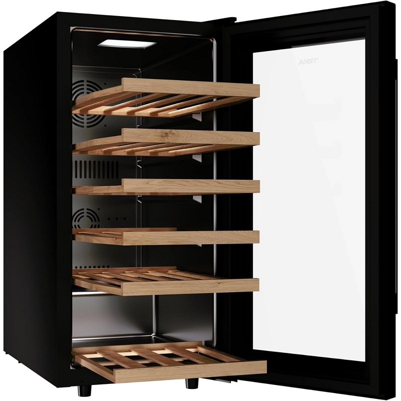 Luftfeuchtigkeitskontrolle: Hält die Luftfeuchtigkeit zwischen 55 % und 75 % konstant – der optimale Wert, um das Austrocknen der Korken zu verhindern und die Qualität und das Aroma jeder einzelnen Flasche zu bewahren. Rauchglas-Doppelverglasung: Die Doppelglastür verhindert das Eindringen von Licht und UV-Strahlen und schützt so die Flaschen vor vorzeitiger Alterung und Aromaverlust.
