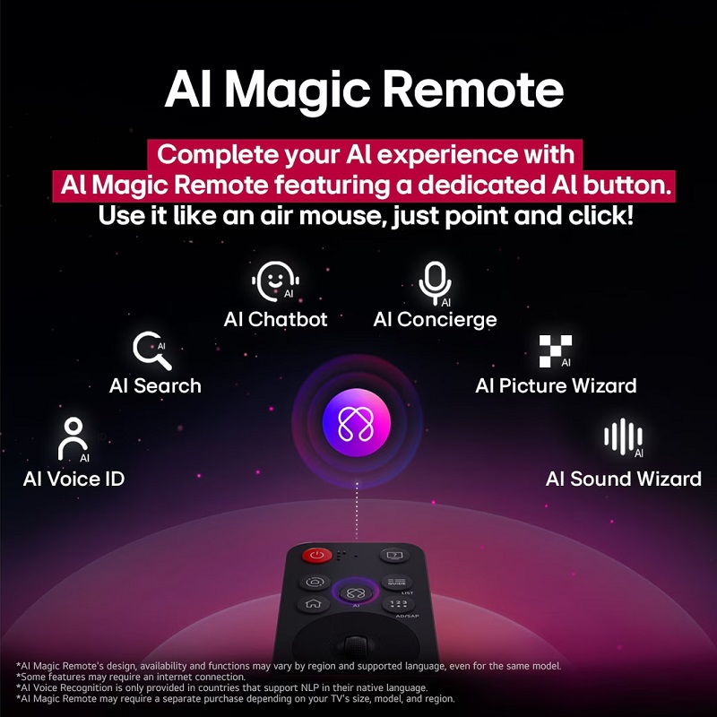 Ein umfassendes Erlebnis mit der AI Magic Remote: Mit der AI Magic Remote steuern Sie Ihren Fernseher ganz einfach per Klick oder Sprachbefehl. Es integriert Funktionen wie KI-Spracherkennung, KI-Suche, einen Chatbot, einen Concierge-Service, einen Bildassistenten und einen Audioassistenten – alles intuitiv und einfach zu bedienen.