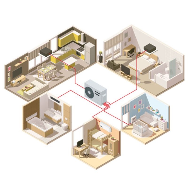 Bis zu 5 Innengeräte mit einem Außengerät und 5 individuell steuerbaren Räumen