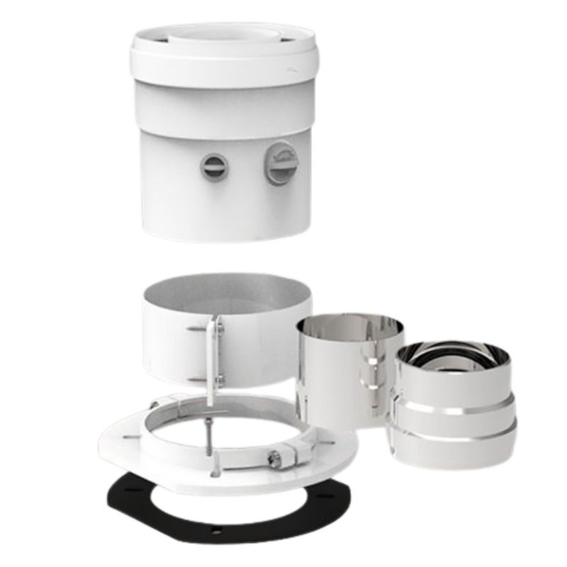 Vertikaler Abgasanschluss (Ø 60/100 mm). Luftdicht. Aluminium.
