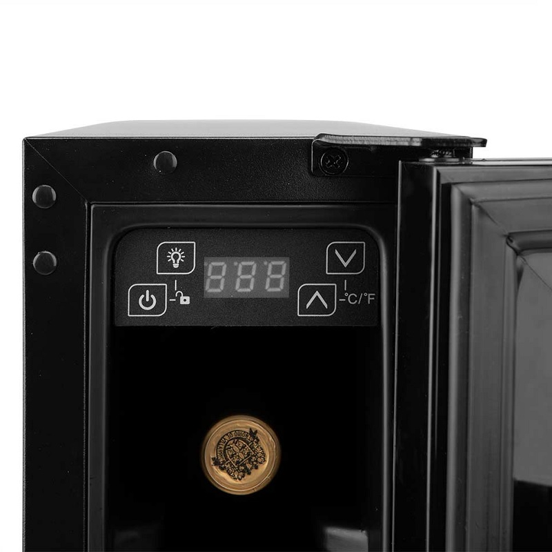 Das Kühlsystem mit Kompressor garantiert eine schnelle und stabile Kühlung und hält die Temperatur konstant. Dank des numerischen LCD-Displays und des haptischen Bedienfelds kann der Benutzer die Temperatur zwischen 5 °C und 20 °C einstellen und so optimal an Rot-, Weiß- und Schaumweine anpassen. Die Temperaturanzeige in °C oder °F bietet zusätzlichen Komfort und Präzision.