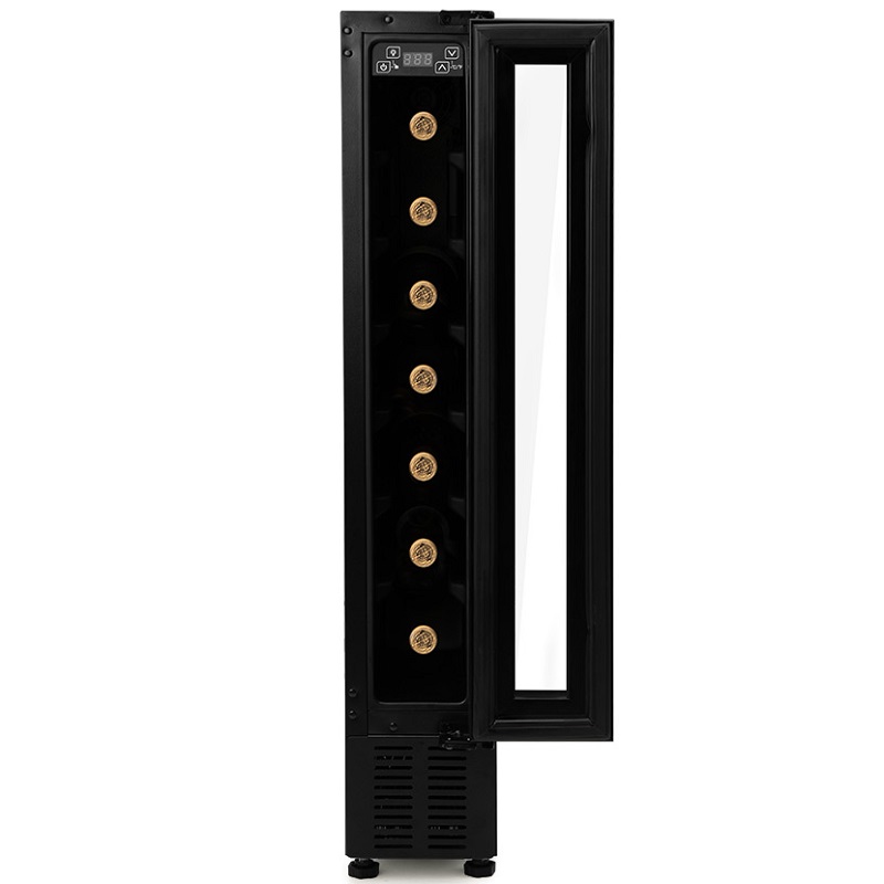 Der Weinkühlschrank mit Kompressor VCE 700 ist die ideale Lösung für Weinliebhaber, die ihre Sammlung platzsparend aufbewahren möchten, ohne Kompromisse bei Qualität oder Leistung einzugehen. Mit einem Fassungsvermögen von 7 Flaschen fügt sich dieses Modell dank seines Einbaudesigns harmonisch in jede Küche und jeden Schrank ein und besticht durch sein ästhetisches und elegantes Erscheinungsbild.