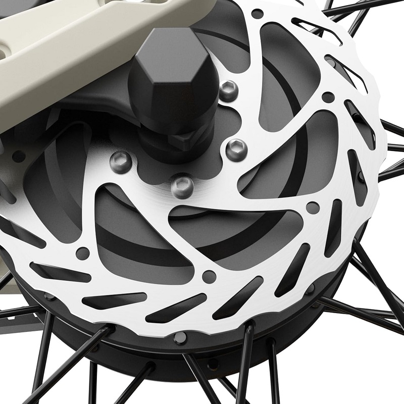 Das E-Mountainbike ist mit hydraulischen Scheibenbremsen ausgestattet. Die Scheibenbremsen an Vorder- und Hinterrad verbessern die Bremsleistung und erhöhen die Sicherheit deutlich. Hydraulische Scheibenbremsen bieten zudem eine bessere Kontrolle. und eine höhere Bremsleistung. Sie leiten die Wärme gleichmäßiger ab und haben eine längere Lebensdauer als herkömmliche mechanische Bremsen.