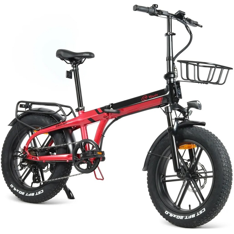 Youin BK1650R DALLAS Elektrofahrrad – Schwarz/Rot – 250 W – 20-Zoll-Räder